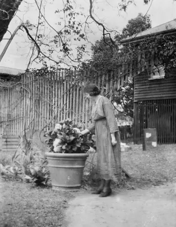 Pictured is Harriet Marks outside the back of Oskarsholme in 1922.