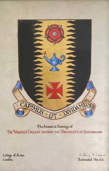 The Armorial Bearings of the College Crest were assigned by Royal Warrant in 1957. The crest comprises three key elements: