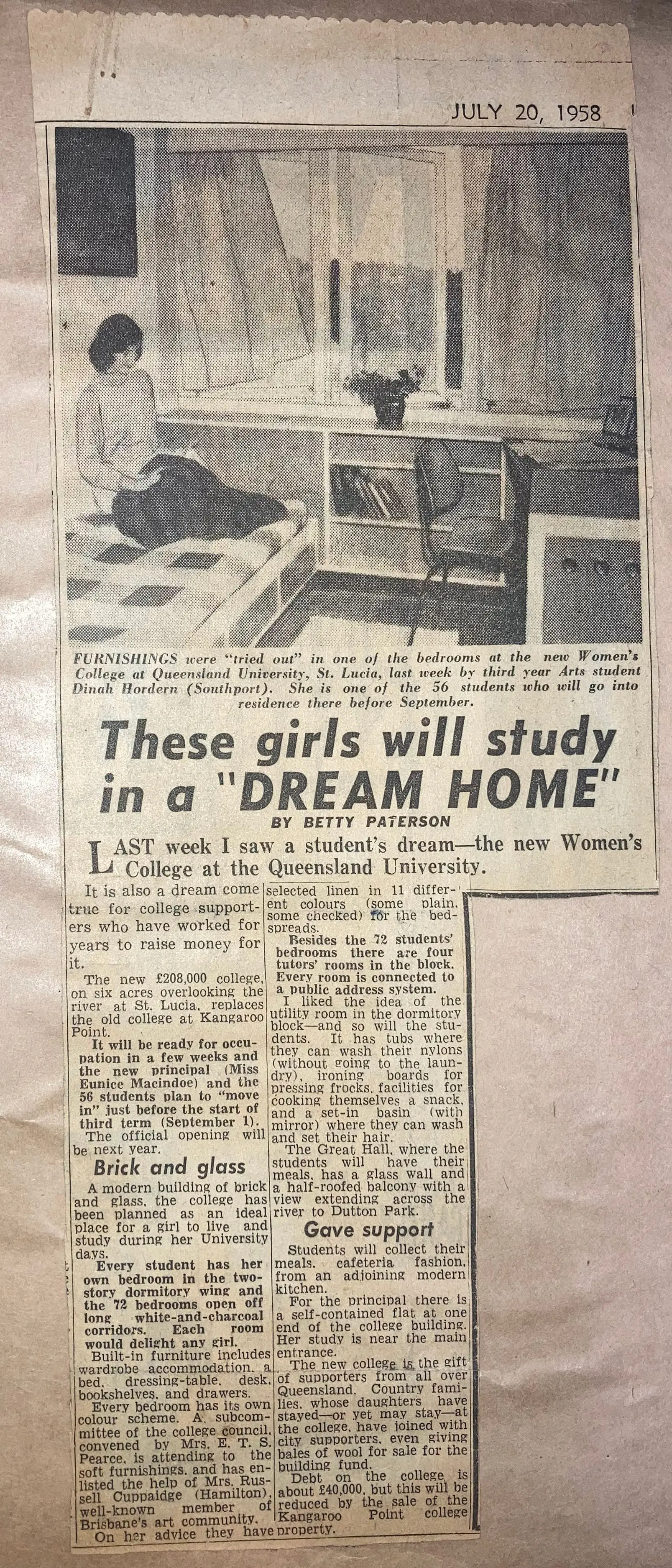 Wednesday 6 August 1958: 56 residents of The Women’s College moved into the new campus at St Lucia.