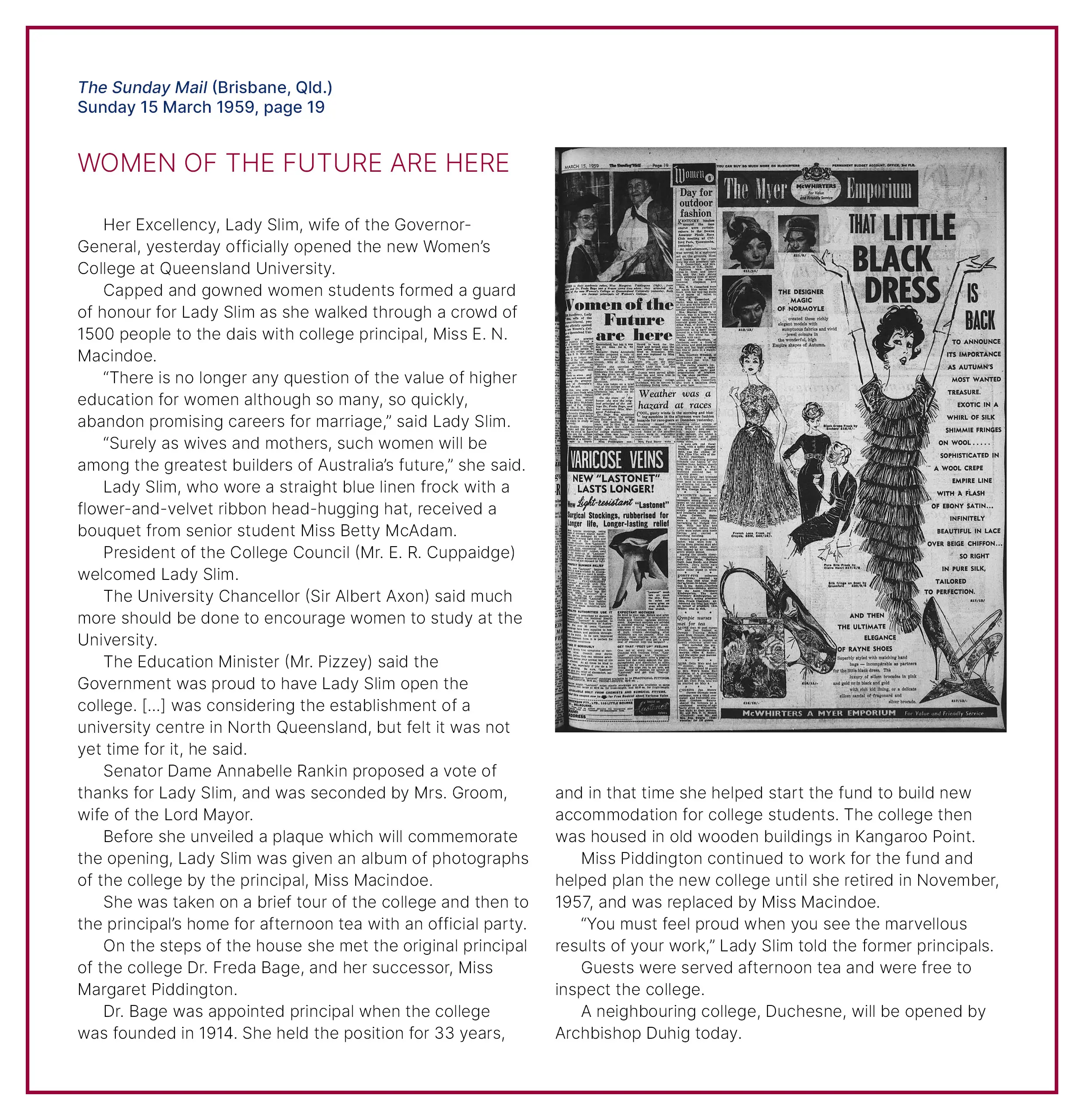Saturday 14 March 1959: Official opening of The Women’s College at St Lucia.